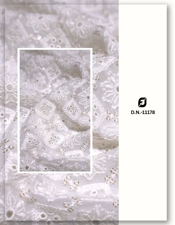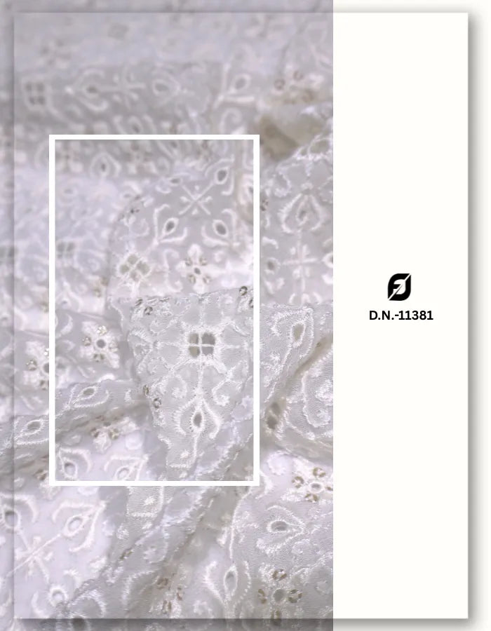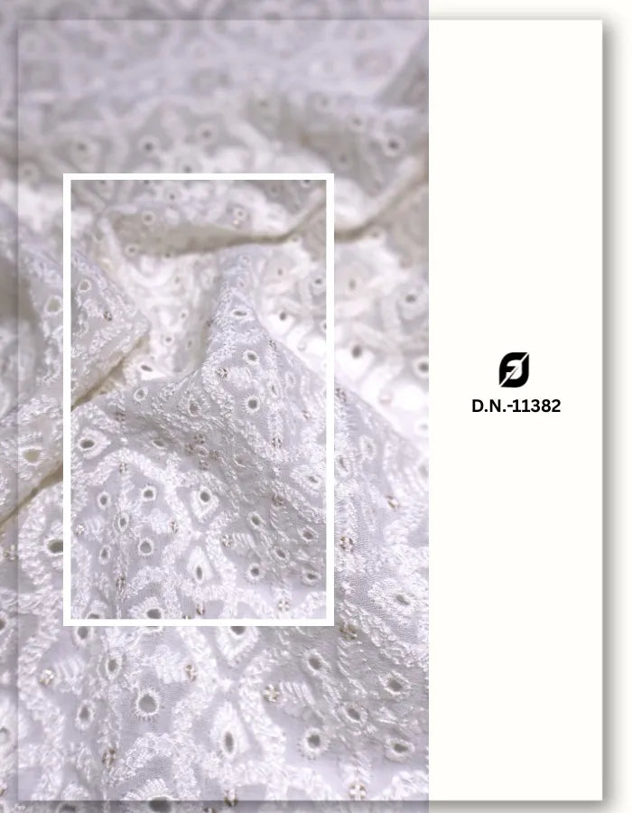 White Eyelet Embroidered Georgette Fabric for Asian Dresses #11381
