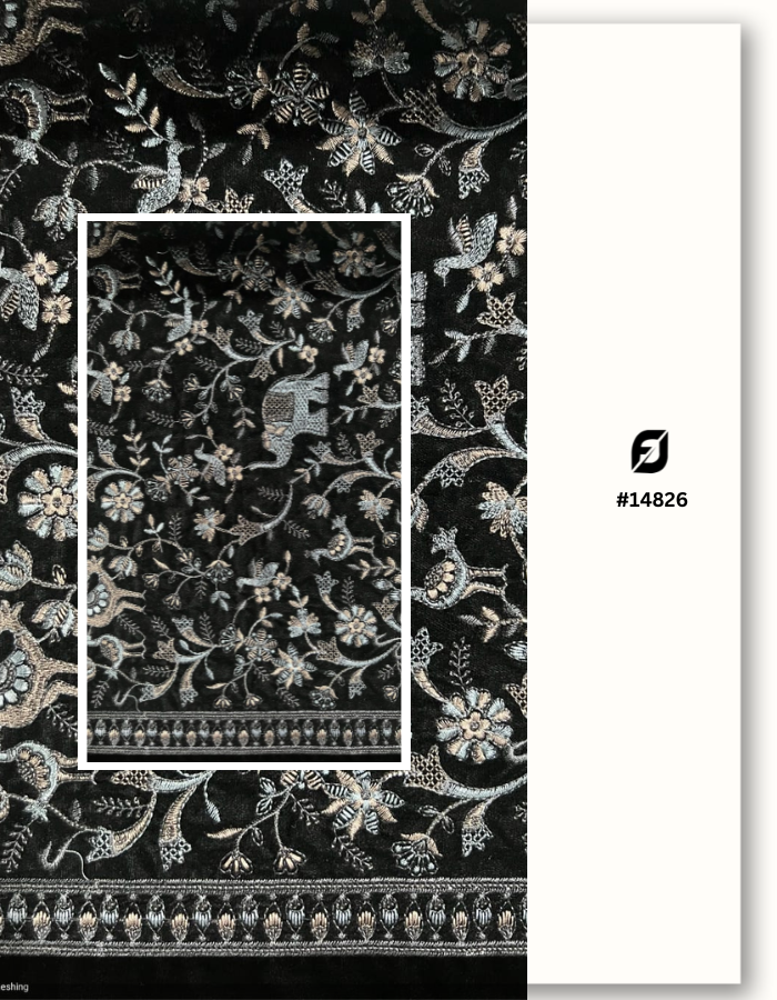Premium Floral Embroidered Black Velvet Fabric for Designer Wear #14826